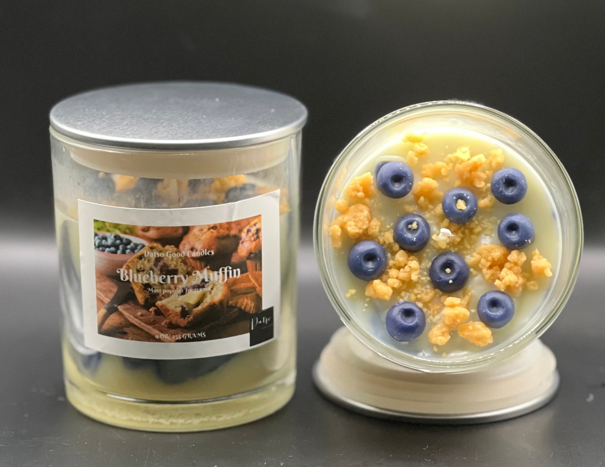 A blueberry muffin for breakfast is a favorite thing. This is comfort food in a candle.